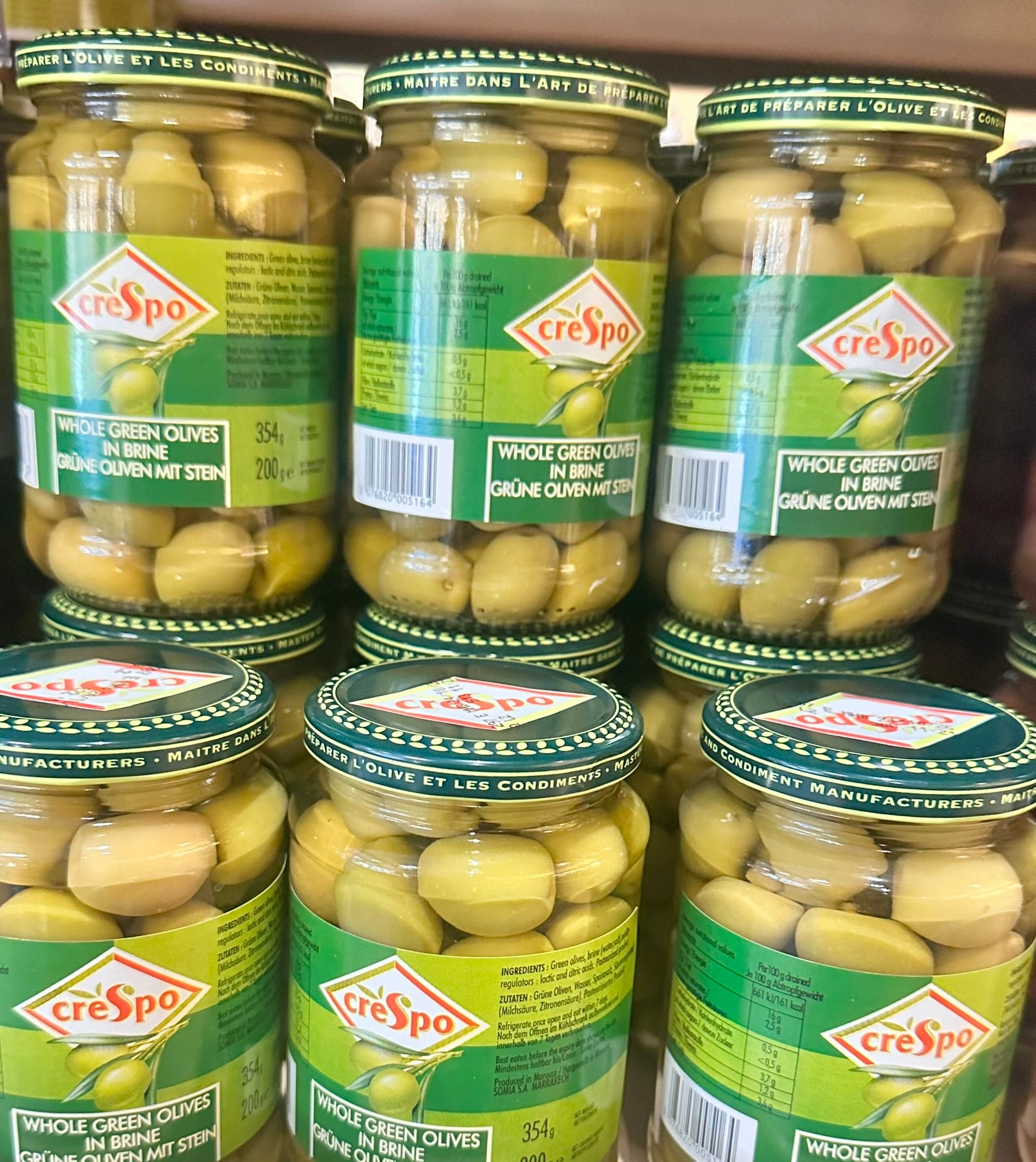 Die grünen Oliven von Crespo werden typischerweise mit wenigen, einfachen Zutaten konserviert: